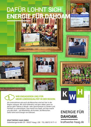 Dr. Ulrich Schwarz: Zumindest ist es der, der für den Verbraucher greifbar ist. Bei uns können Sie immer persönlich vorbeikommen, wenn Sie eine Frage oder ein Problem haben. Und neben unserer eigentlichen Dienstleistung tun wir ja auch was für die Region. Wir unterstützen mit unseren Spenden Sportvereine, Schulen und Kulturvereine, zahlen Gewerbesteuer in der Region und sichern unmittelbar und mittelbar Arbeitsplätze. Dafür, finde ich, lohnt sich Strom von Dahoam.