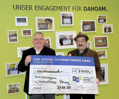 Die Kraftwerke Haag spenden 1000,- Euro an den Schützengau Wasserburg-Haag.