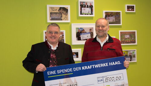Die Kraftwerke Haag spenden 500,- Euro die Jugendabteilung des TSV 1864 Haag.