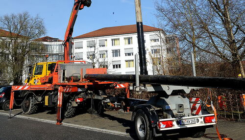 Insgesamt 2,5 Stunden war der 3-Mann-starke Bautrupp der KWH für die Störche im Einsatz.
